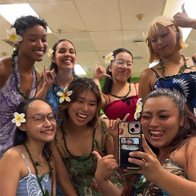 また、contemporary dance/ Hawaiian themesというフラダンスの授業やcontemporary island musicというウクレレの授業では、ダンスと音楽の観点から実際に身体を動かしながらハワイ文化を学ぶことができ、midterm testやfinal testでの発表会に向けてクラスの仲間と沢山練習して準備をしたのもとても楽しい経験になりました。それらの授業の始まりに行われるハワイ語のチャンツはこの土地や学びの場への感謝と敬意を共有する時間であり、学問だけでなく学ぶ姿勢そのものを大切にする “Hawaiian spirits” を体感できました。